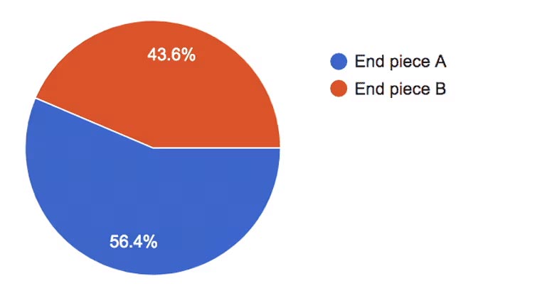 The variation number 3 was the one selected, and we have two options for the case end piece. Which one should we produce?