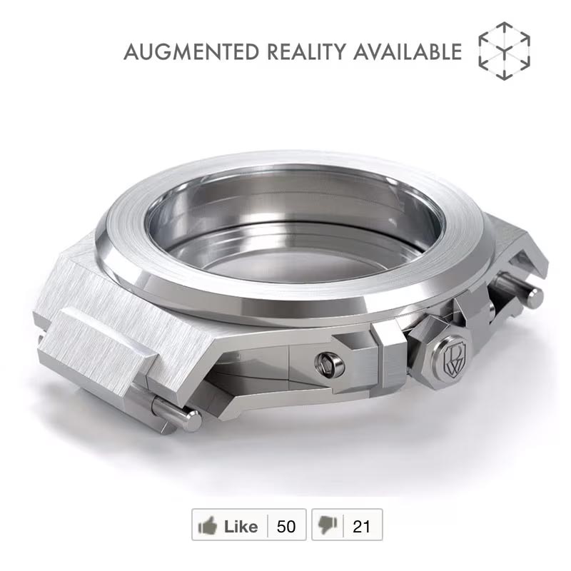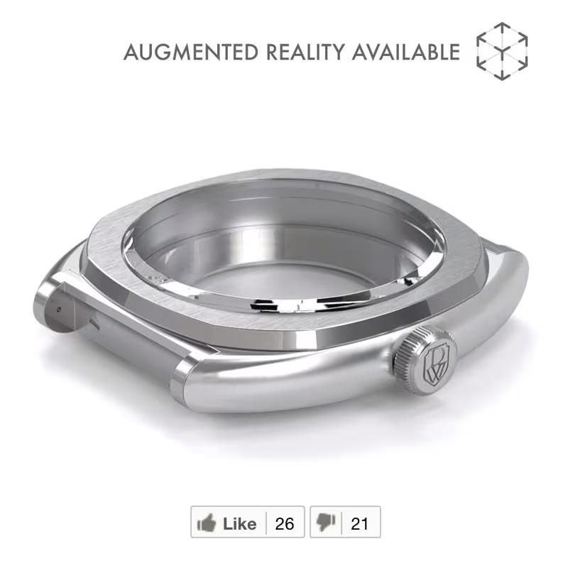 The first step was to decide on the case design. Below are the four options the Club members have voted and the results. If you want to see the cases in 3D and AR just click on them (only works with iphone), or if you want to see more pictures just go to the watch case page.
